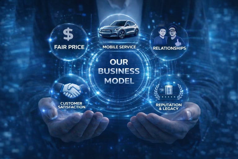 Our professional mobile headlight restoration business is built on quality, trust, and relationships rather than volume. Unlike many companies that rush through as many cars as possible or charge excessive prices, we focus on doing the job right the first time and delivering results we can truly stand behind. We believe in fair, honest pricing—while we can confidently justify $60 for a professional headlight restoration, we do not believe customers should have to pay $125 or more for the same service. Customer service and customer satisfaction are at the center of everything we do. By coming directly to our clients’ homes or workplaces and providing a friendly, personable experience, we aim to create long-lasting relationships rather than one-time transactions. We take great pride in every restoration we complete, and our goal is to build a positive reputation in the community and leave behind a legacy of integrity, craftsmanship, and trust.